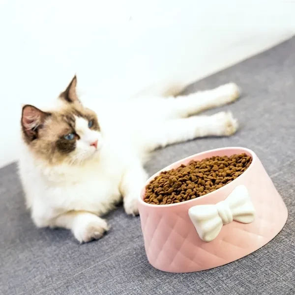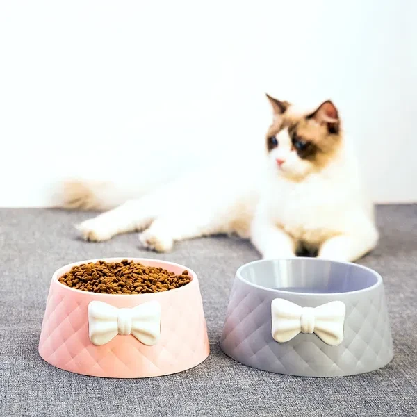 Cute Pet Feeders Bowknot Diamond Pattern Leakproof Bowl for Dog Cat Pets Food Bowls