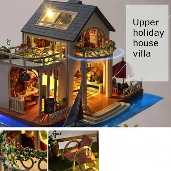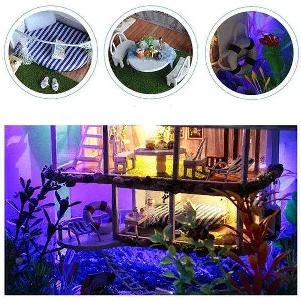 DIY Doll House Toy 3D Wooden Doll Houses Miniature Dollhouse Toys with Furniture LED Lights