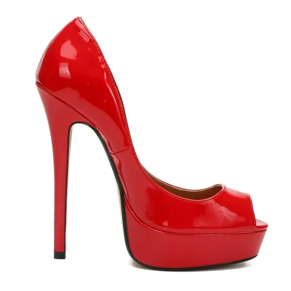 E+ width US15 16 17 Summer platforms Stilettos Peep Toe shoes woman Bridal 16cm Thin High Heels Sandals Patent Leather wedding Pumps Female Round Toe zapatos mujer