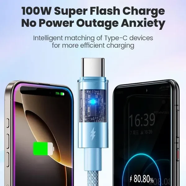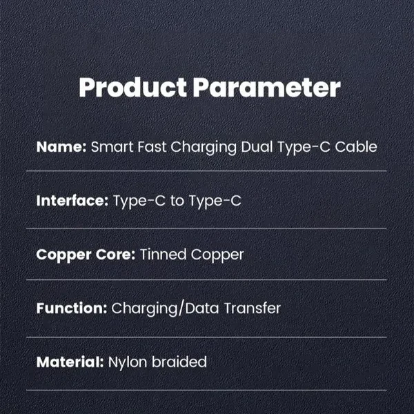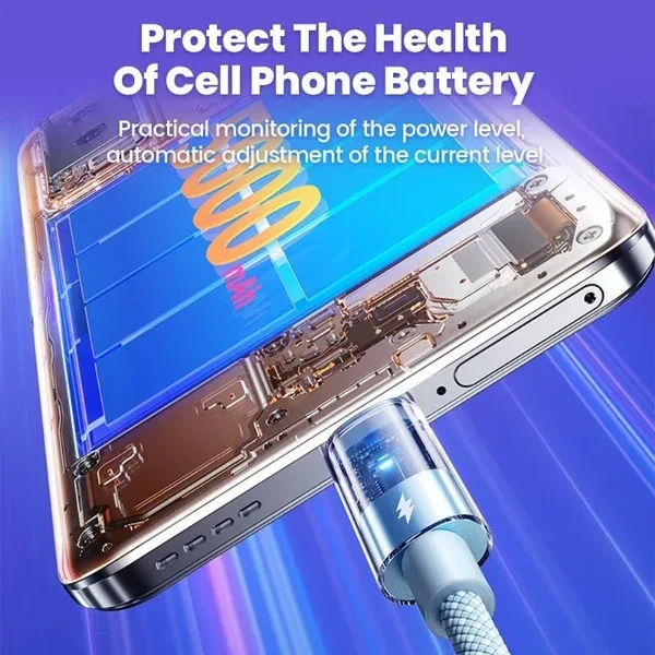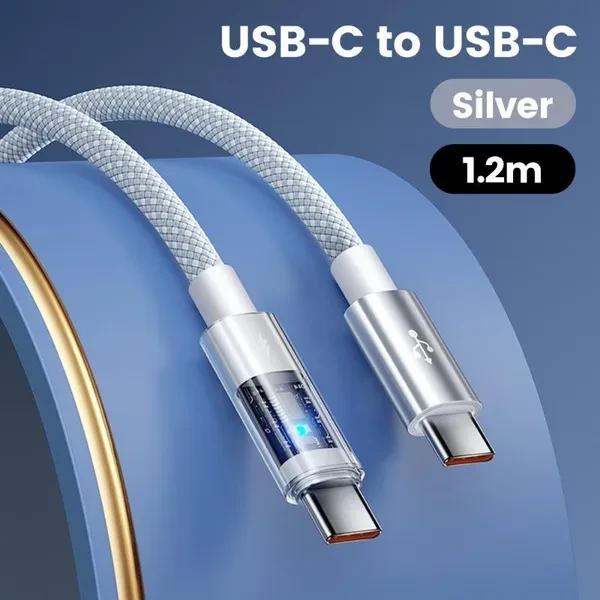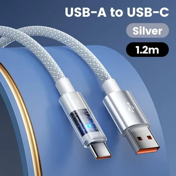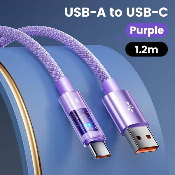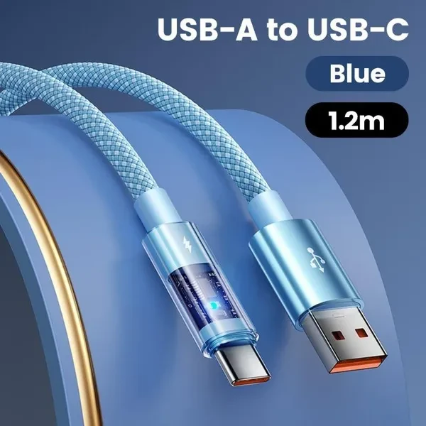 Brand Name: Elough Certification : CE,FCC,RoHS Product Name: 6A Type-C Cable Material: Aluminum alloy +TPE Maximum Current : 6A Connector A : USB A/USB C Connector B : Type-C Function: Fast Charge + Data transmission Color: Black/Silver/Blue/Pink/Purple Length: 1.2m Package Included : 1 * Type C Cable Feature 1: 6A Type-C Cable/ USB C Cable/ USB Type-C Cable Feature 2: 6A Fast Charge + Data transmission Feature 3: charging state at a glance.