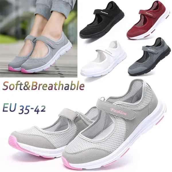 EUR Size35~42 Summer Women Casual Shoes Mesh Breathable Fitness Shoes Walking Sneakers(Black,Red,Dark Gray,Light Gray,White)