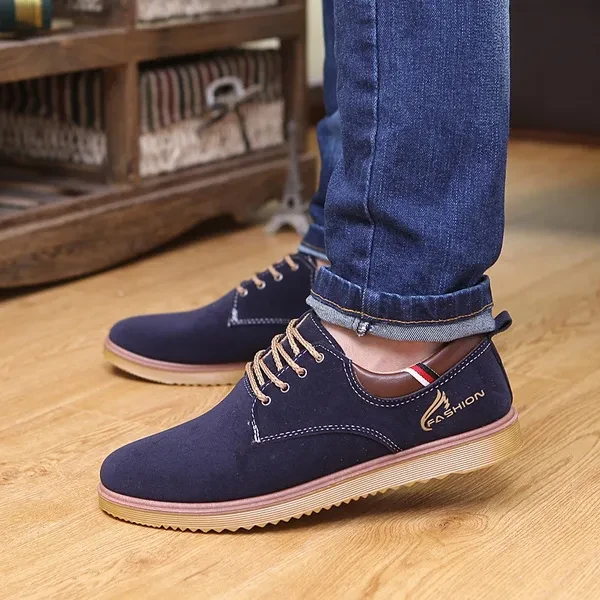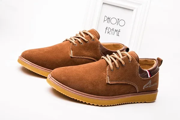 Come without Shoe Box! Item: H03 Upper material: suede leather Sole material: Dichotomanthes Whether inventory: no Gender: Male The upper height: low Sole craft: plastic injection shoes Cortical features: anti velvet skin In the way: the front tie Popular elements: flange, thread, tassel, muffin with, totem, leather stitching Function: Non Slip Pattern: carved wing Suitable for seasons: winter, spring, autumn Color: black, blue, Khaki Size: 39,40,41,42,43,44,39-44 :