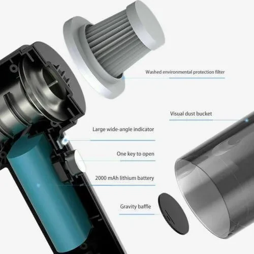 Features: Portable handheld vacuum cleaners can be used to clean hard-to-reach areas. Hand-held vacuum cleaner can be used as computer vacuum dryer, laptop vacuum cleaner, desk vacuum cleaner, car, piano, pet room, desk hand vacuum cleaner. USB rechargeable, car vacuum cleaner cordless built-in 2000mAh rechargeable lithium battery, can work continuously for 15-25 minutes, can be fully charged in 3-4 hours. Equipped with charging cable, can be connected to laptop, car USB port charging, mobile power, etc. Its HEPA filter is washable and reusable to keep dirt and dirt out and avoid clogging. Remove the filter from the vacuum cleaner's cup, wash it with water and dry it for a second use. (Tip: if the vacuum filter is full of dirt or suction is insufficient, please clean the filter in time to ensure that the dust collector works properly.) Hand-held car vacuum cleaner with 6Kpa strong suction, suitable for daily household cleaning dust. The output power of the 120W super power motor provides a strong suction of up to 6000pa, which can quickly and easily remove food residue, particles and pet hair in the house or car. Wet/dry vacuum wireless mobile operation is more convenient. Hand-held wireless professional car vacuum cleaner to keep your car and home clean every day. Specification: 100% brand new with high quality Size: 16.5 X14.5 X4cm Vacuum degree: 6000 pa Volume of dust cup: 0.5L Battery: 2000 mah Package Included: 1x Handheld Vacuum Cleaner 1x Washable Filter 1x Slit Nozzle 1x Multifunctional Brush 1x USB Charging Cable Note: The colors may be a little difference for the different monitor display. Please check as much as possible to make sure the item is the one that you need. Please allow 0.5-1 inch difference due to manual measurement.(1inch=2.54cm)