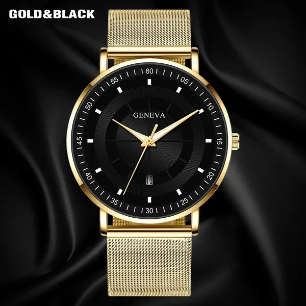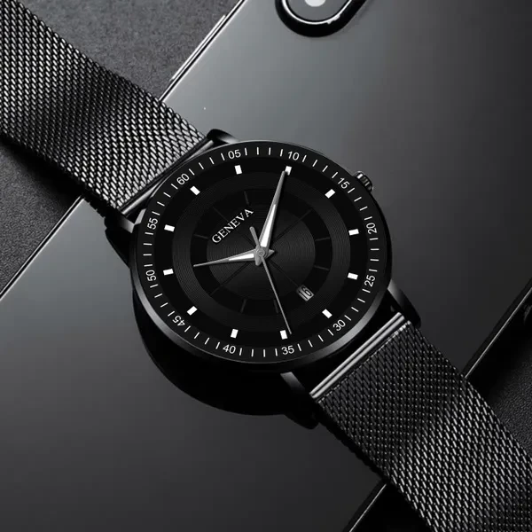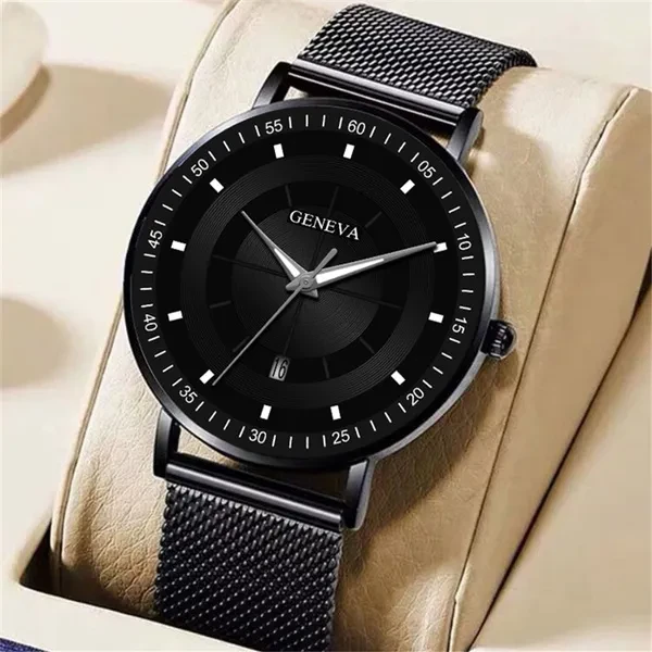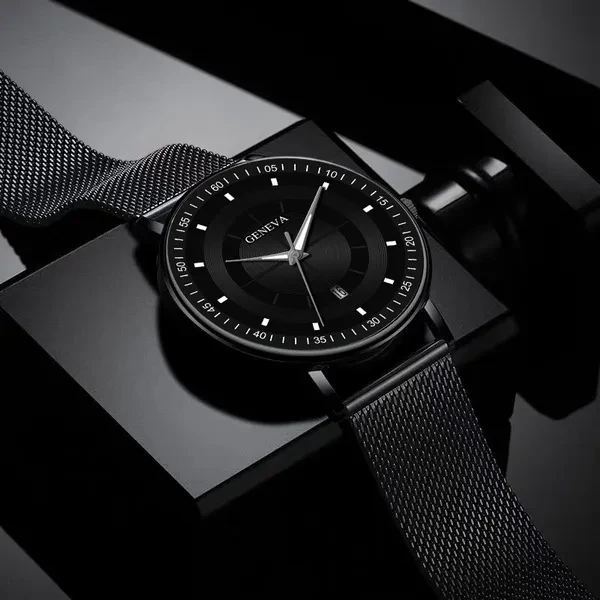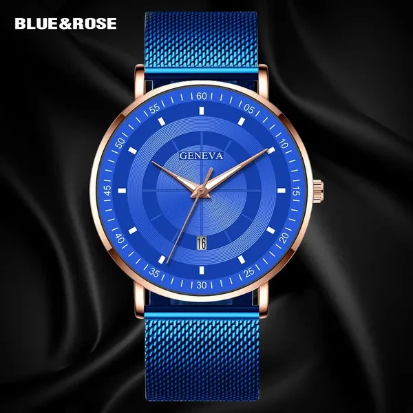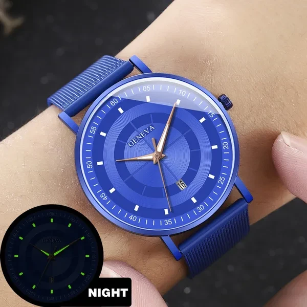 Fashion Luminous Black Blue Watch Men Luxury Mesh Steel Belt Quartz Calendar Watches Casual Business Gift relogio masculino