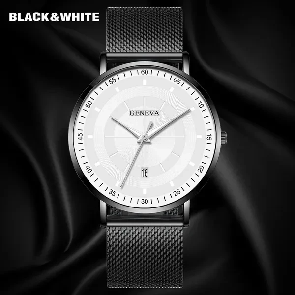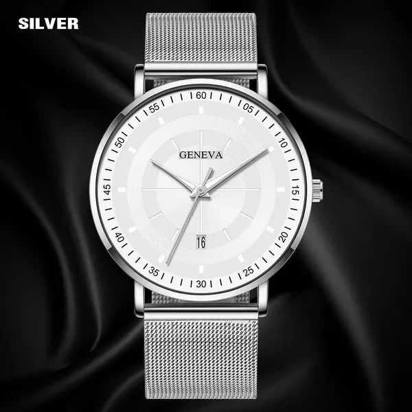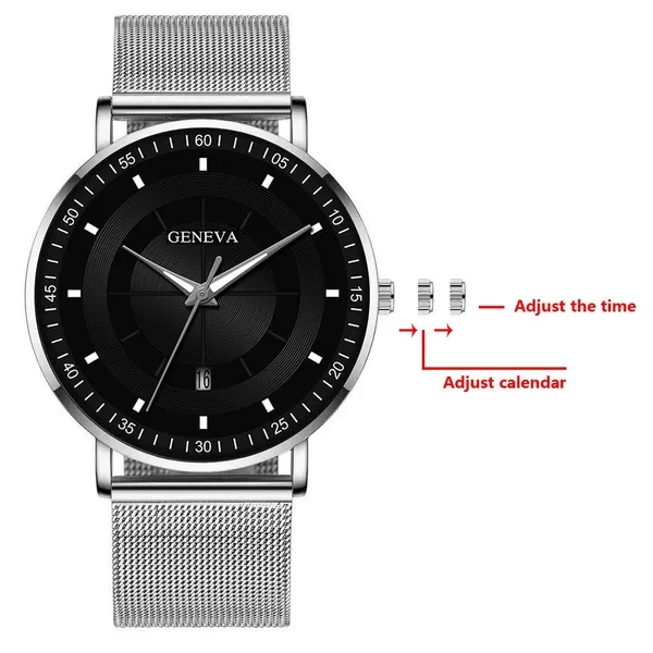 Description: Movement: quartz watch Style: simple, casual, business Dial diameter: 4cm Band width: 2.0cm Band length: 24.50cm Band material: stainless steel/leather Case material: stainless steel Mirror material: glass Packing: OPP bag Buckle type: pin buckle Waterproof: no Gender: men Calendar:yes Package content: 1 X PC watch - Precise time and keep good time - Fashion watch, very charming for all occasions - This is the best gift for your friends, colleagues, and loved ones - Gift occasions: advertising promotions, business gifts, festivals, party, birthdays, travel
