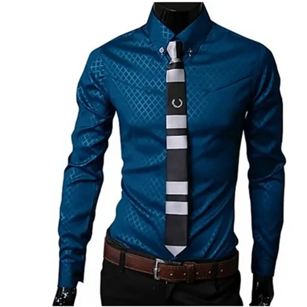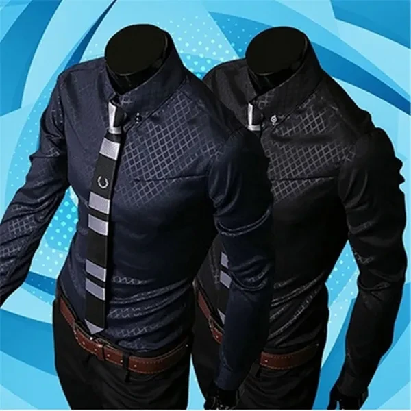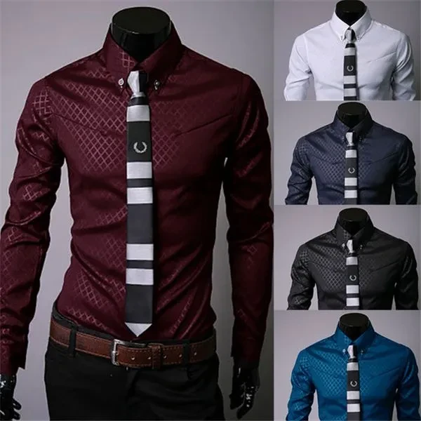 Fashion Men Luxury Business Style Slim Fit Long Sleeve Casual Dress Shirt