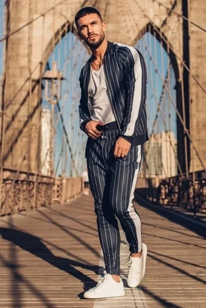 Fashion Mens Striped Tracksuit Jogging Suit Casual Sport Wear