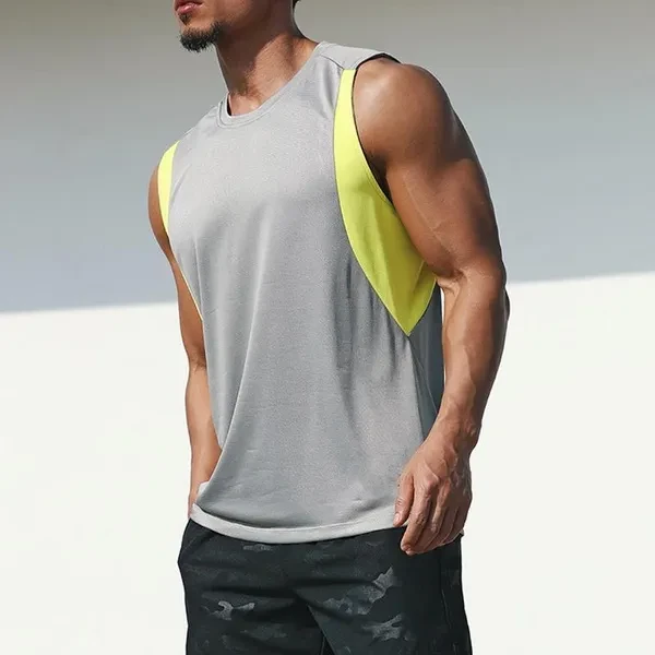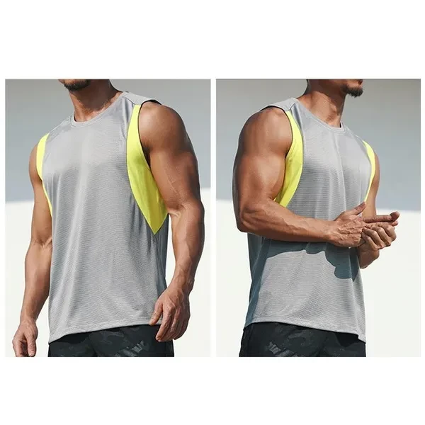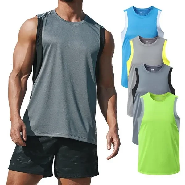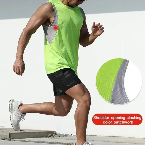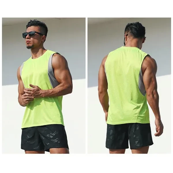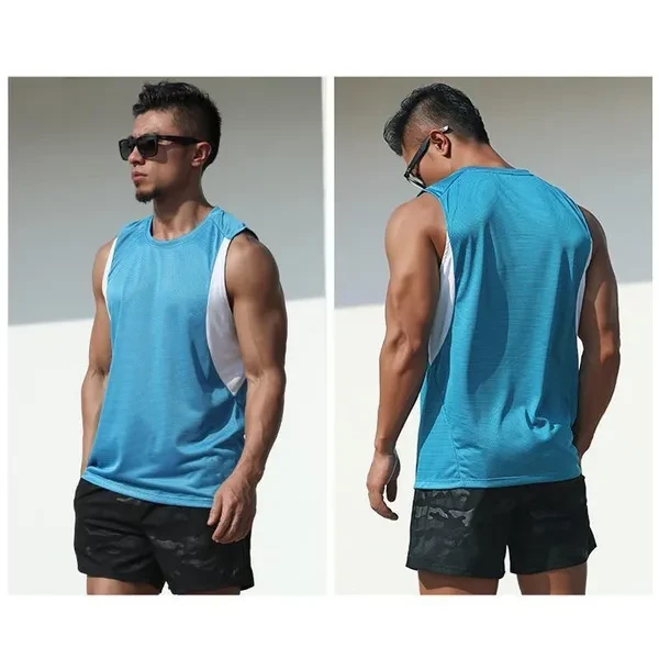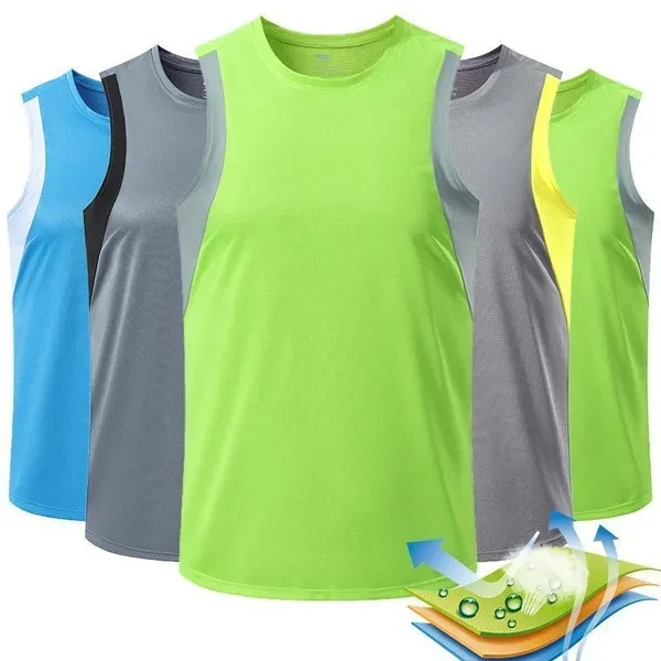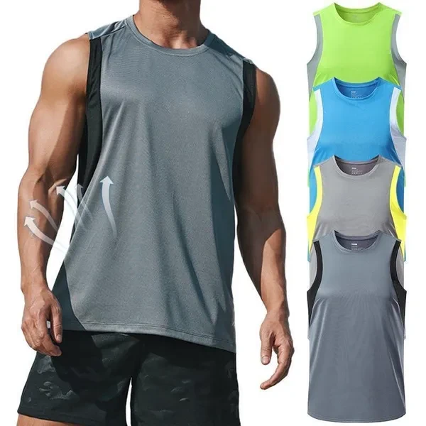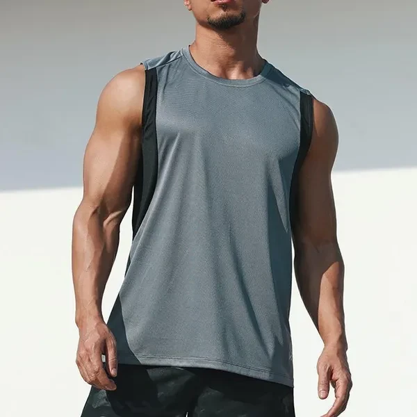 Fashion Quick-drying Singlet Men's Sports Sleeveless Breathable Vest Fitness Training Tank Tops Men Round Neck Running Fitness Muscle Training Tops