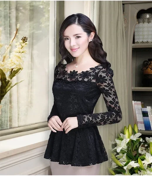 Fashion women tops New Women Ruffles blouse Long sleeve Lace Shirt Blouses & Shirts plus size women clothing Plus Size S-5XL