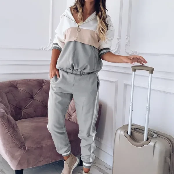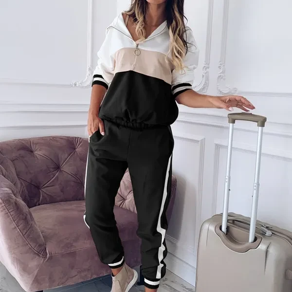 Fashion Women's Sexy Zipper V Neck Hooded Jogging Suit Hoodies Set Tracksuits