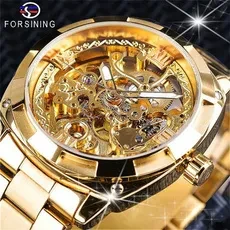 FORSINING Quality Men Skeleton Automatic Winding Mechanical Watches Gold Stainless Steel Waterproof Wristwatch Montre Uhr with Gift Box