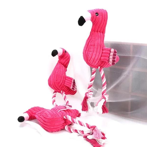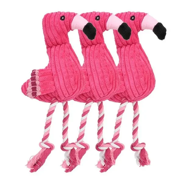 Fun Pet Toy Flamingo Shape Corduroy Chew Toy For Dog Puppy Squeaky Plush Bone Molar Dog Toy Pet Training Dog Accessories QVN