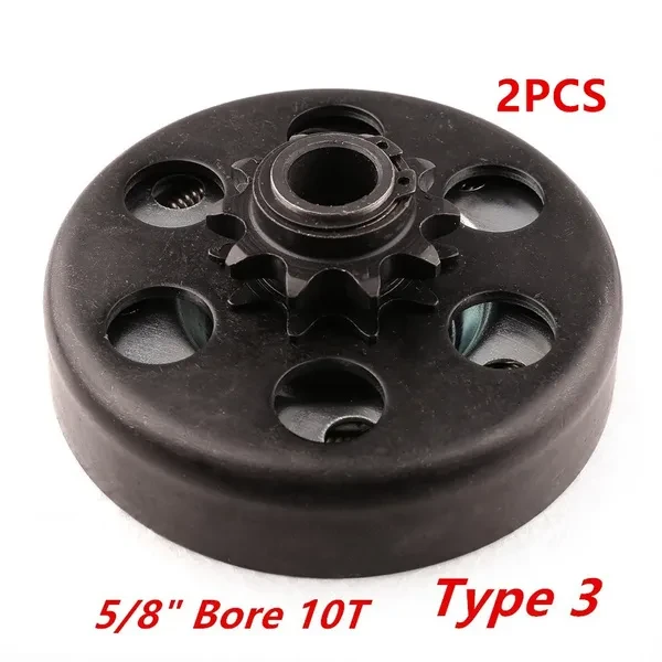 Size1: Size:3/4" Bore 10T 1.Centrifugal Clutch 3/4" bore, 10 Tooth for 40,41,420 chain, Up to7HP engines. Common clutch for 3.5-7hp engines 3600 to 4200 RPM 2.Perfect for Go Kart Minibike Baja Mini Bike MB165 and MB200, including Baja Heat, Mini Baja and the Baja Warrior 3.Compatible with 2-6.5hp Honda and Honda Cloned Engines GC160, GC190, GX120, GX140, GX160, GX200 Briggs and Stratton and 2-6.5 HP with 3/4” Shaft Tecumseh Engines 4.Mounts onto crankshaft using bolt and washer on the end of the crankshaft 5.Set screws and chain NOT included Compatibility: Baja Mini Bike MB165 & MB200 (Baja Heat, Mini Baja, Baja Warrior) Package includes 1 x Go Kart Clutch