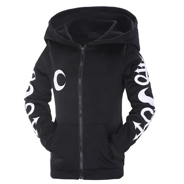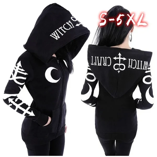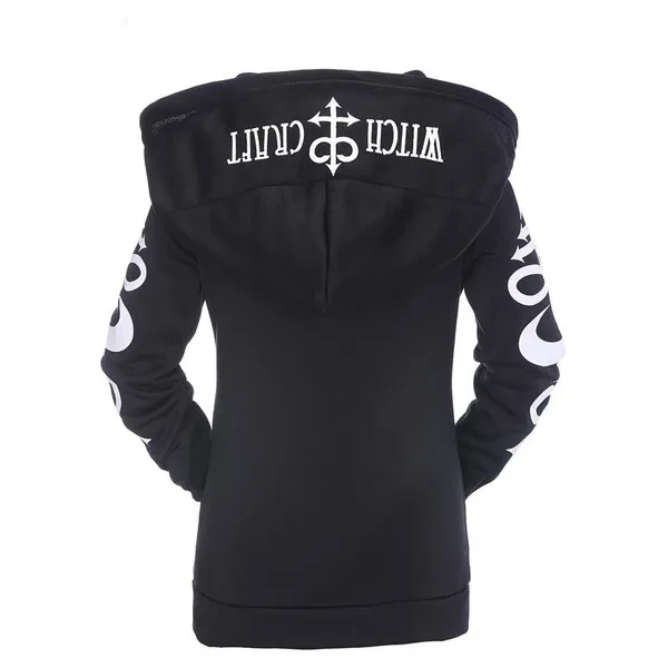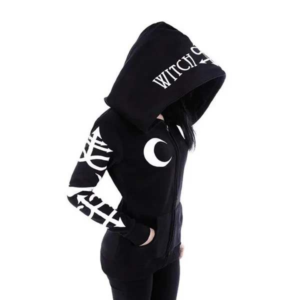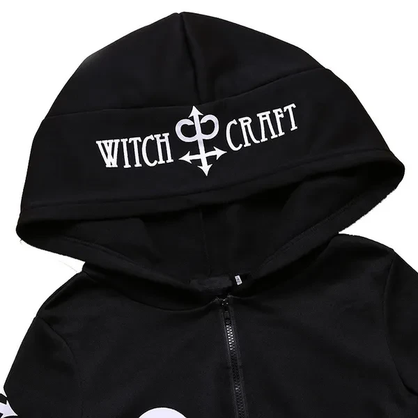 Gothic Punk Women Witch Sweatshirt American Style Print Oversized Hood Casual Slim Long Sleeve Tracksuit Hoodie
