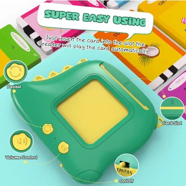 Green Pink Dinosaur Learning Machine for Children, Talking Flash Card, English、Spanish Electronic Early Education Machine