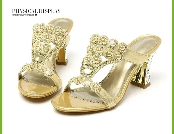 High heel slippers 2020 summer new women's summer diamond rough heel sandals with a word of water drill cool slippers