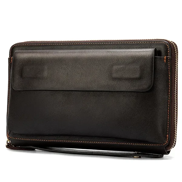 High Quality Soft Genuine Leather Mens Long Cellphone Clutch Wallet Business Purse for Men Card Holder Hand Bag