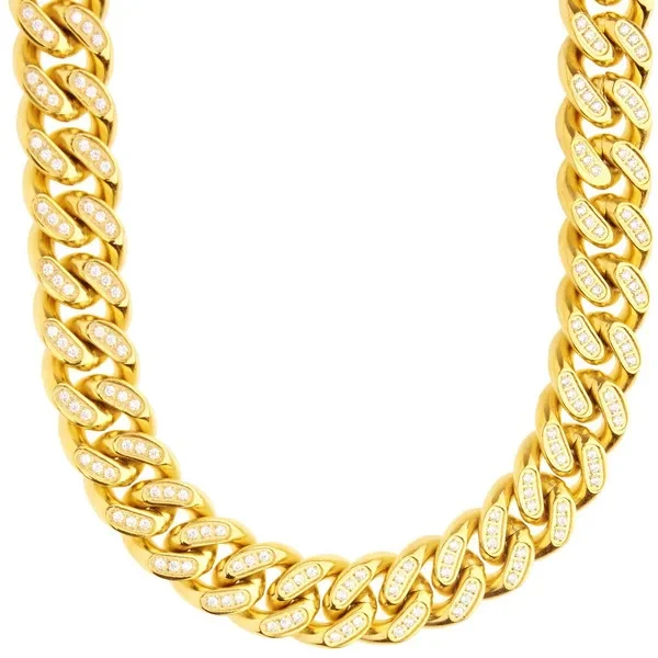 Iced Out Bling Stainless Steel Miami Cuban Chain - 14mm gold