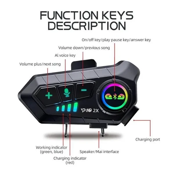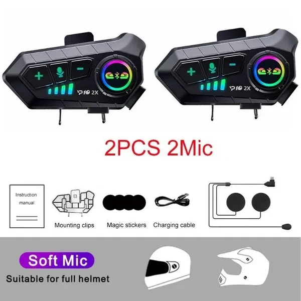 Kebidumei YP10 Bluetooth Motorcycle Helmet Intercom 300M Wireless Intercomunicador 2000Mah Moto Walkie Talkie With Soft Hard Mic