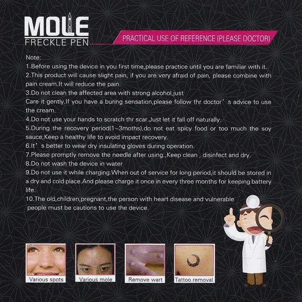 ??Laser Mole Removal Pen Set-Specifications: Product: Beauty spot pen Material: Acrylic Color: silver, gold, rose gold, white, Chinese red Power supply: plug charging Gear position: 9 gears Advantages: Verruca removal, fleshy mole removal Applicable scenarios: Commercial ??Laser Mole Removal Pen Set-Packaging: 1x host 10x fine needles 1x thick needle 1x needle cap 1xUSB charging cable 1x manual 1x box ??Laser Mole Removal Pen Set-Features: 【The latest updated skin beauty machine】Our skin marker remover pen has updated 9 levels. You can monitor the intensity level on the LCD. Nine different adjustable scan point power outputs can be used for different treatments: the lowest level is used for spots and freckles, and the highest level is used for moles and skin tags. 【Easy to use at home】This beauty pen is an easy-to-operate product. If you are not familiar with it, just follow the user manual. Before inserting the needle, turn on the spot remover and select the resistance level as needed. The OUT button can work on the mole and swipe lightly from beginning to end in a small area. 【Safe and effective】This mole removal pen has been approved by the FDA. This beauty pen has carbon ionization technology and microcomputer control function, equipped with 9-level adjustable resistance sweep power output, intelligent and reliable processing method. 【When using for the first time】You can practice the pen on the surface of the apple on the horizontal plane. Use a fine needle to pierce the top layer at a low speed, which can be repeated several times. Do not stand and hit a place to avoid burns to the dermis. It seemed bad to do this immediately, but the knot ab started to fall off naturally. Please be patient and wait for the scar to disappear. ??Laser Mole Removal Pen Set-Advantages: ①Professional mole removal. When removing moles, pay special attention to distinguishing the depth of the mole. Some moles grow on the surface of the skin, while the roots of the mole grow deep into the skin tissue. When using electroacupuncture, do not scratch the surface of the mole at one time. Burned out in a grid manner. ②Freckle quickly. Move the electric pen slightly to the spot position and move it back and forth, you can clearly find that the melanin will fall off after the electric acupuncture sweeps. ③Quickly eliminate granulation. Touch the electric pen slightly to the granulation area, and burn the derived granulation root cells with a laser electroacupuncture. After a week, the granulation will fall off automatically. Only the meat is not large, otherwise it should be burned out several times to avoid affecting wound healing. ④ In addition to tattoos. Generally, the area of ​​burning tattoos is relatively large. Using thick needles, the method of burning tattoos may take slightly longer than the method of scanning the spots, and it must be used continuously. If the area is too large, the treatment should be divided into multiple treatments. ??Laser Mole Removal Pen Set-Note: 1. Due to the differences between different monitors, the picture may not reflect the actual color of the item. 2. Compare the detailed size with yours. Due to manual measurement, please allow an error of 1-3cm. Thank you! ??Why should I buy a laser mole removal pen set? 1. 100% brand new, high-end quality. 2. Adopt electric ion technology. 3. With Ha LED reflector. 4.9 level adjustable. 5. With LCD display. 6. Built-in 18650 rechargeable battery. 7. When operating, you can turn on the light on the mole pen. 8. Easy to operate in low light conditions. ?? Have questions about the laser mole removal pen set? If you have any questions about our laser mole removal pen set, please contact us for the first time, and we will provide you with a satisfactory solution within 24 hours.