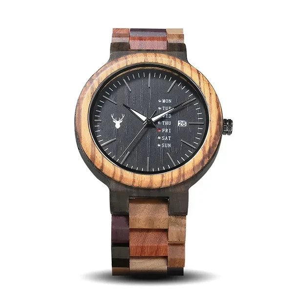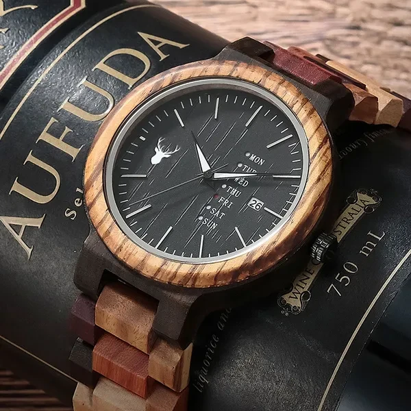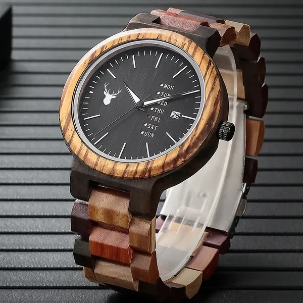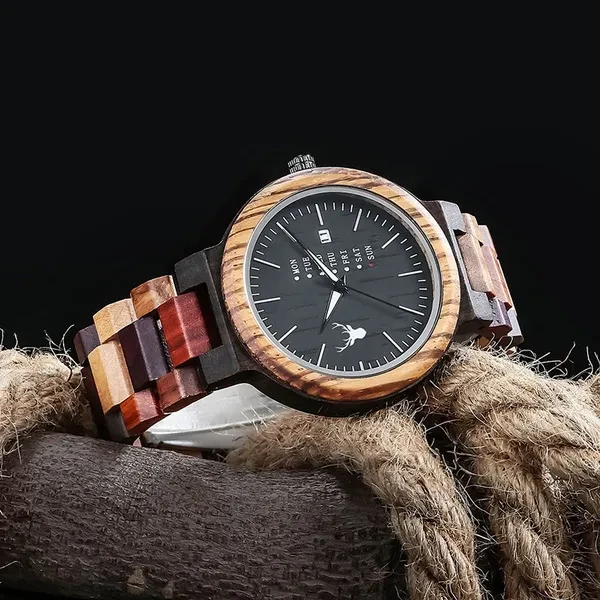 LeeEv Mens Wooden Watch Natural Solid Sandal Multi Color Wood Watch for Men