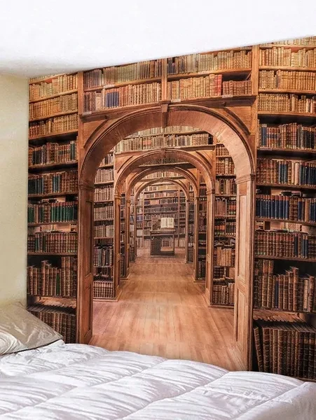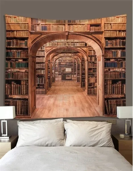 Library Bookshelf Tapestry Wall Hanging Wall Art Tapestry Printed Wall Tapestry for Bedroom Background Home Decor