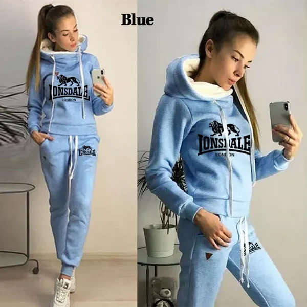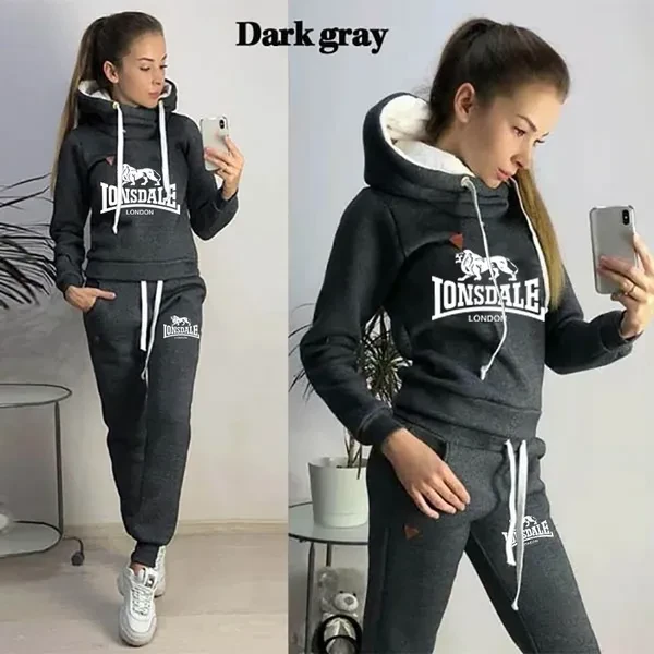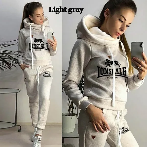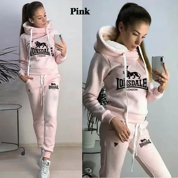 Lonsdale New Women Printed Tracksuit Hoodie Sweatshirt and Pant Suit Ladies Casual 2 Piece Outfits Set Jogging Suit