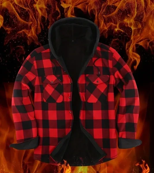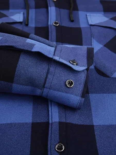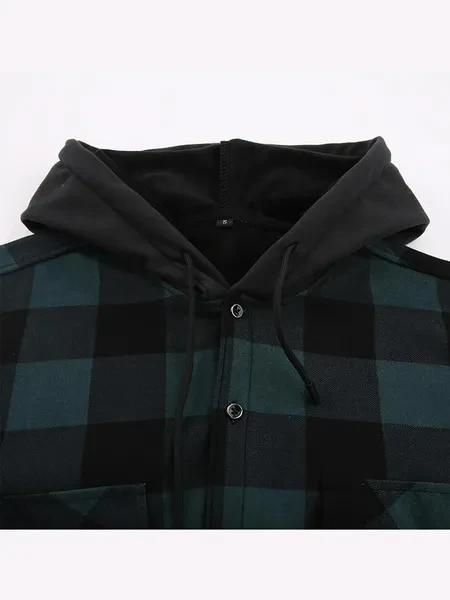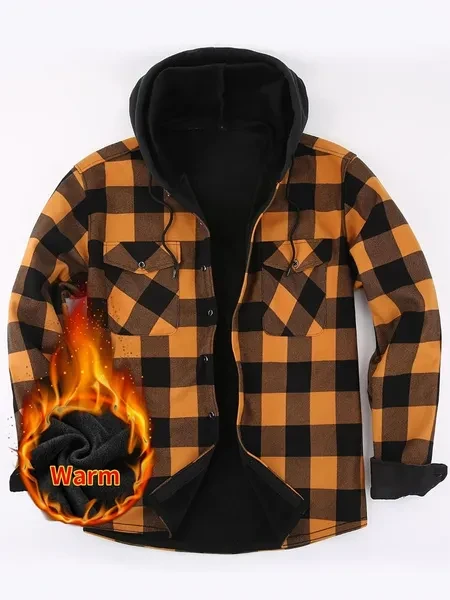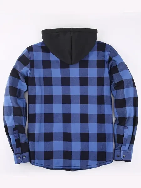 Loose Jacket Men's Autumn and Winter Warm Jacket Fashion Casual Plaid Long Sleeve Pocket Hooded Jacket