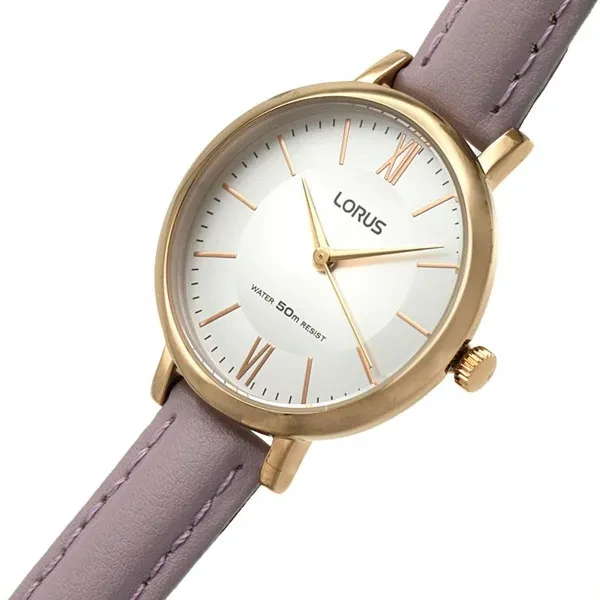 Lorus RG264LX6 Soft Mauve Leather Strap Gold Rose Strap Ladies Watch
