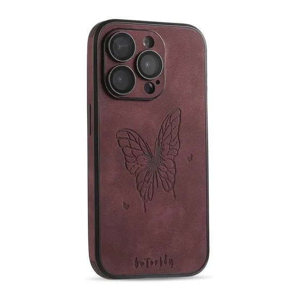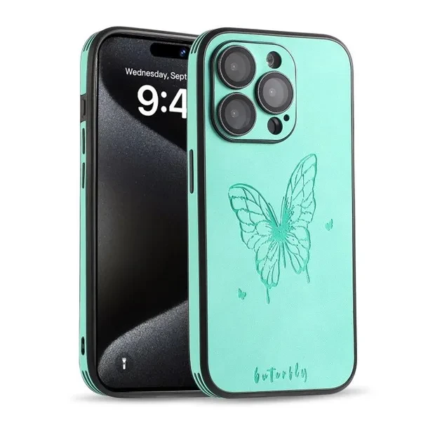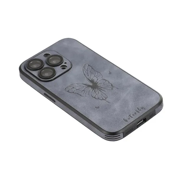 Luxury Leather Butterfly Camera Lens Film Protect Phone Case For IPhone 15 14 13 12 Pro Max Camera Protection Shockproof IPhone Shell Back Cover