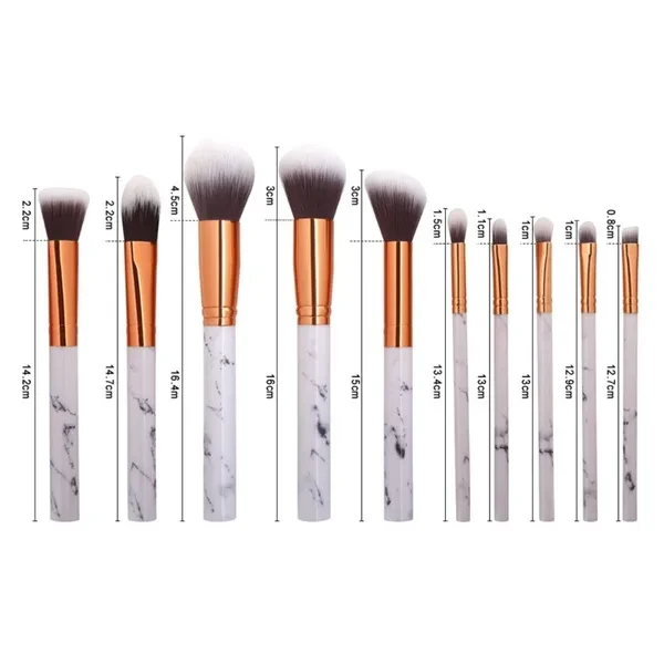 Description: 1.A professional quality brush set for every application. 2.The smooth marble handles are not only beautiful but also comfortable to use. 3.The leather is naturally soft, safe and tasteless. It can protect makeup brush, is easy to save and carry makeup brush. 4.The brush is easy to clean, and don’t shed. 5.All brushes are extremely soft and easy to hold makeup, easy to stick powder, natural color, rendering uniform. 6.Suitable for professional use or home use. 7.Made with soft and dense nylon hair without any absorption of cosmetic and no shedding. Specifications: Type:Set/Kit Brush Material:Nylon Handle material:Plastic Model Number:H1147 Size Type:Full size Skin Type:All skin types Brand:MAANGE Package included: 10 x Makeup Brush + 1 x PU leather OR 1 x PU leather Note: 1.Please allow 1-3mm differs due to manual measurement. 2.Due to the different display and different light,the picture may not reflect the actual color of the item. Thanks for your understanding.
