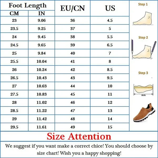 Hello there! welcome to our shop! Quality first, best service. Customers are our friends. Stylish design, 100% brand new, high quality! Simple packaging, in order to better protect the shoes Please refer to our size list !!!!! This is very important !!! Product: Men's outdoor shoes Help surface material: Suede Outsole material: rubber Color: Black,Yellow,Nave blue,Grey Size: 39 40 41 42 43 44 45 46 47 48 Tips: !!!If your feet have a bit fat, please choose one bigger size. *Color may little vary due to different display setting. *Please allow 1-3cm differences due to the maunal measurement. Thanks for your understanding and HAVE A NICE DAY ! Your five-star rating is an encouragement to us. Any problem ,please contact us.Thank you ! Why buy from us ? √ Worldwide fast shipping! √ Free tracking number! √ Quickly and satisfying communication! √ Unique high-quality goods! √ Best prices!