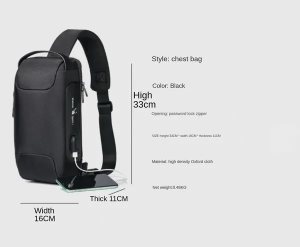 Men Outdoor Shoulder Bag Water-Resistant Oxford Cloth Chest Pack Fashion Burglarproof Chest Bag 5 Color