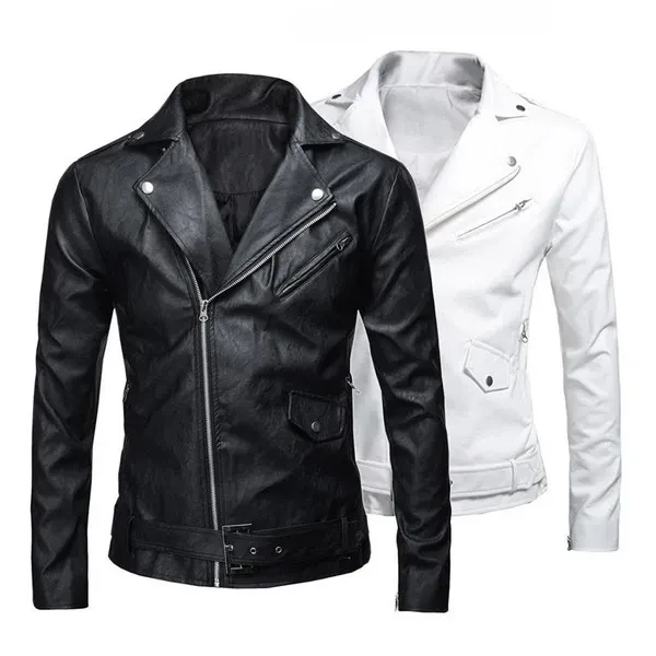 Men's Autumn Leather Jacket Slim Fit Motorcycle Jacket Zipper Casual Coat
