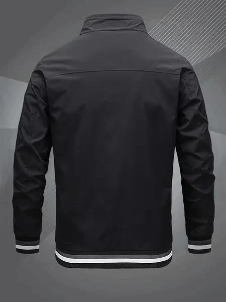 Men's Classic Design Baseball Collar Jacket For Spring Fall, Men's Bomber Jacket Windbreaker Jacket