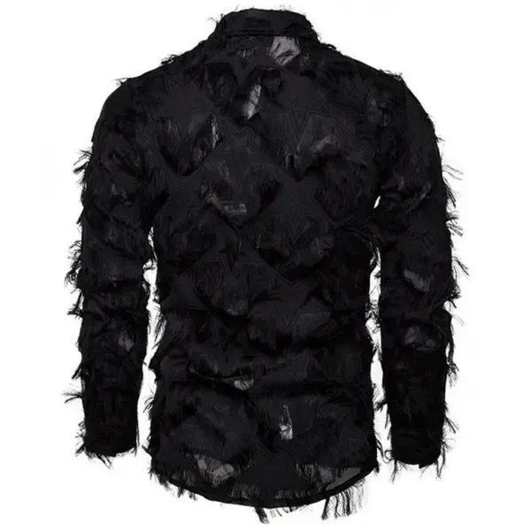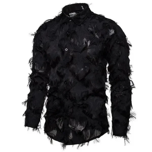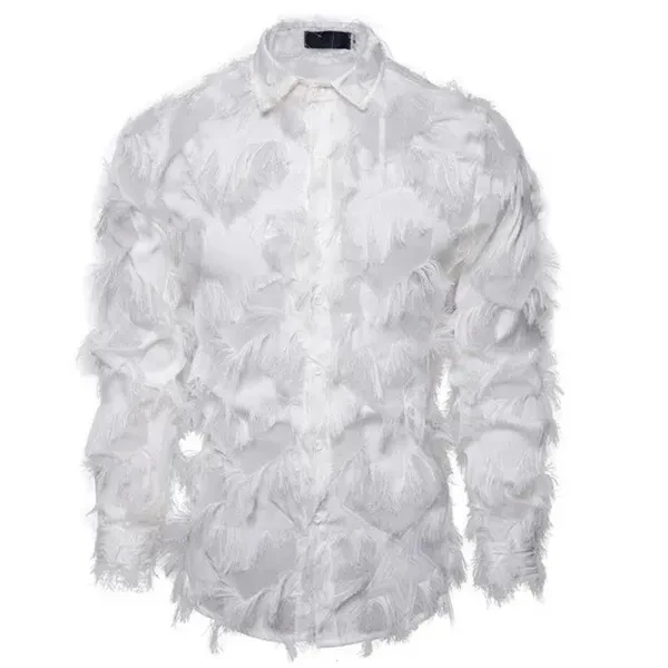 Men's Fashion Pattern Three-dimensional Feather Slim Long Sleeve Shirt