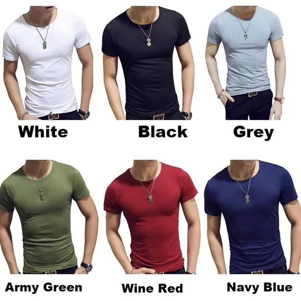 Men's Fashion Spring Summer Cotton Short Sleeve Stretch T Shirt Mens Casual O-neck Loose T Shirts
