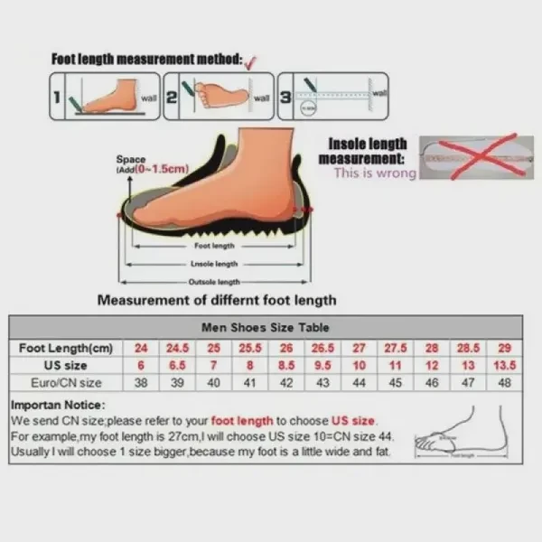 Color:Black,Yellow,Grey Size:40-47 Men Size Chart: (Important) US 7.0=EU 40=250mm(bare feet length) US 8.0=EU 41=255mm US 8.5=EU 42=260mm US 9.5=EU 43=265mm US 10=EU 44=270mm US 11=EU45=275mm US 12=EU 46=280mm US 13=EU47=285mm Please Decide The Shoes Size According To Your Foot Length If Your Feet are Fat. You May Choose The Bigger One Thank You, I Wish You a Happy Shopping.