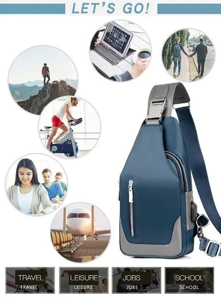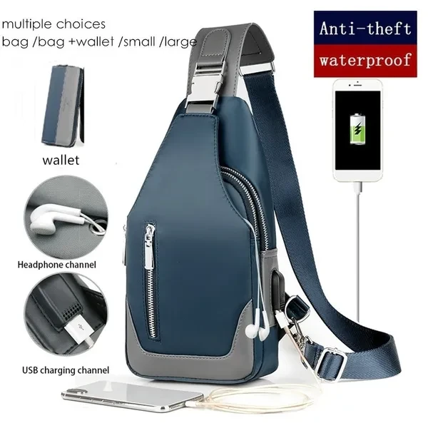 Men's Messenger bag shoulder Oxford cloth Chest Bags Crossbody Casual messenger bags Man USB charging Multifunction Handbag&wallet
