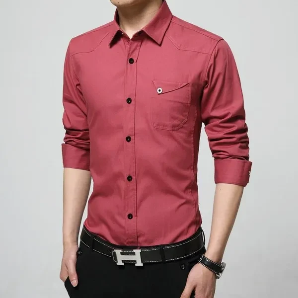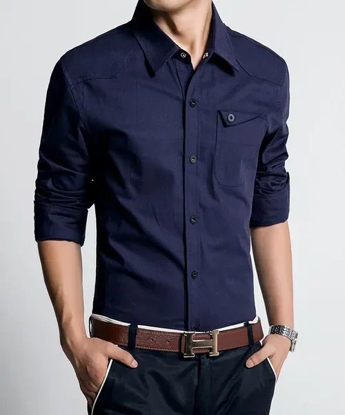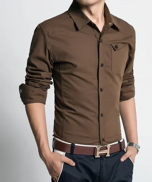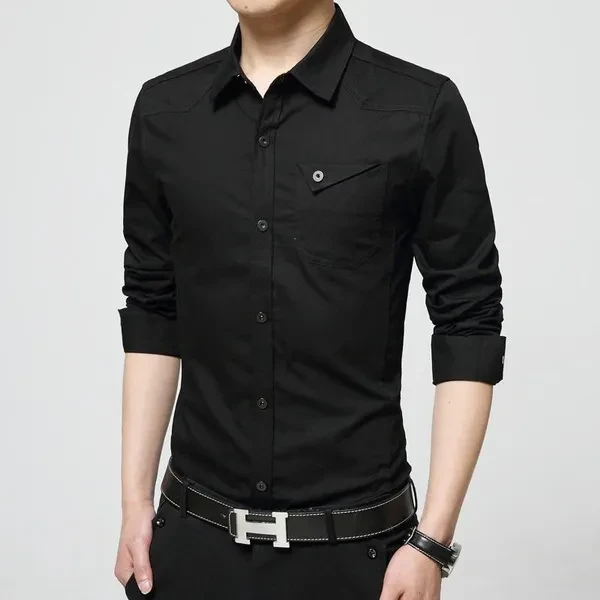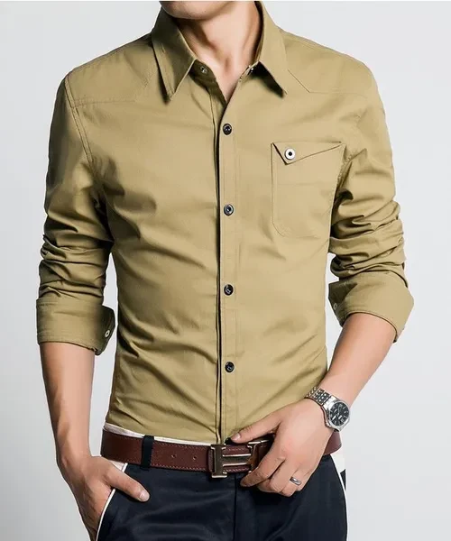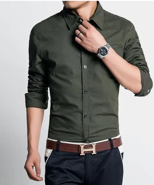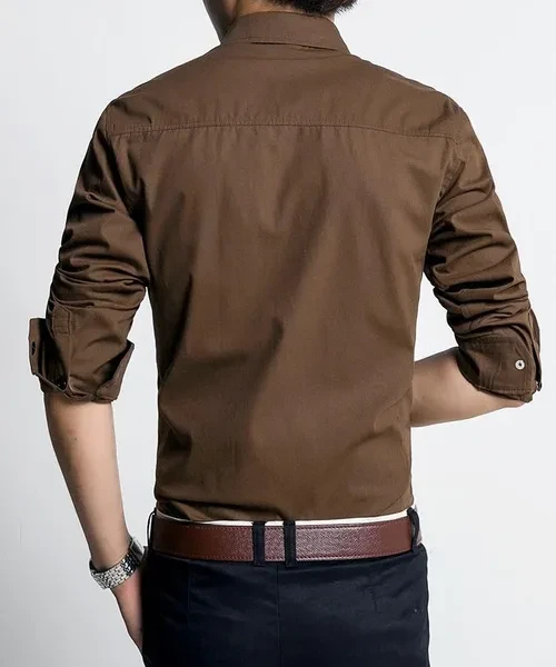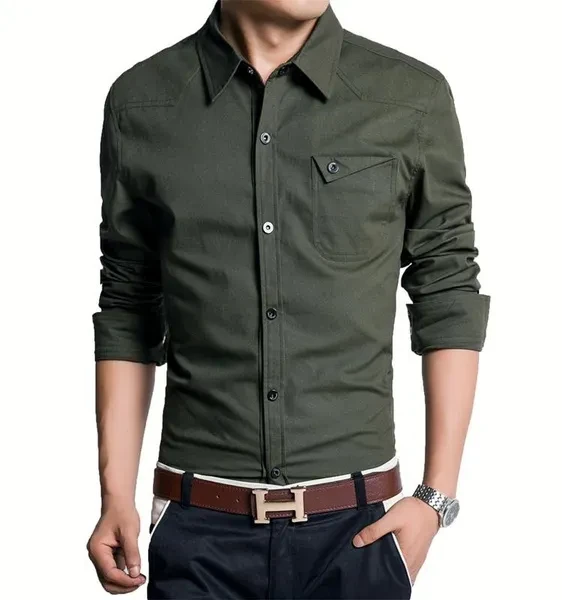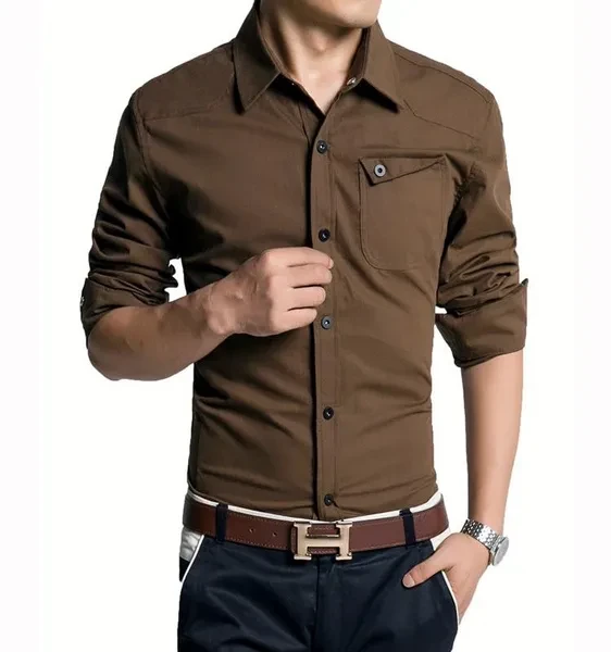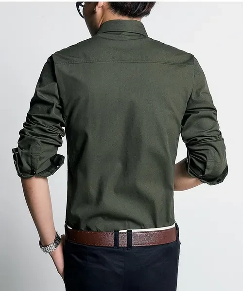 Mens Military Shirts Long Sleeves Cotton Slim Fit Multicolor Button Down Casual Shirts Tops