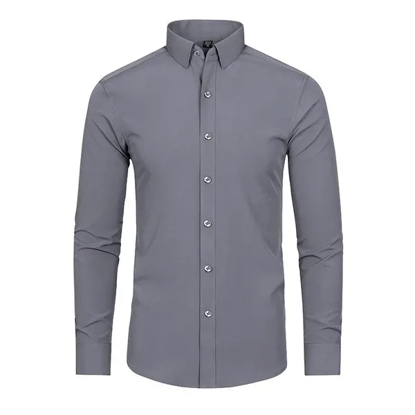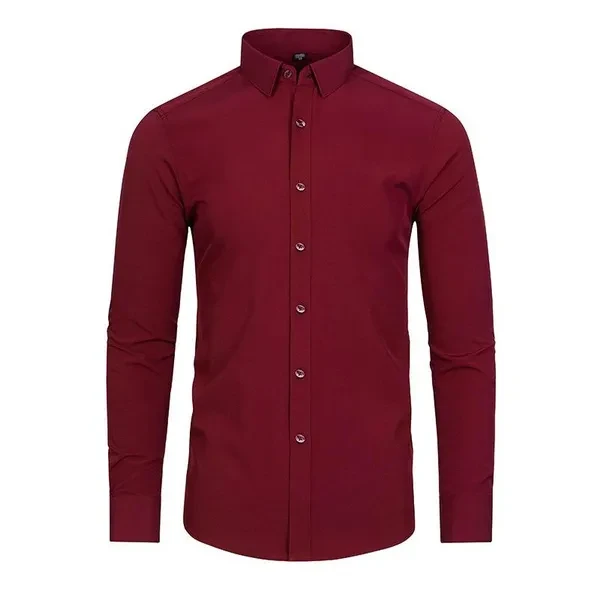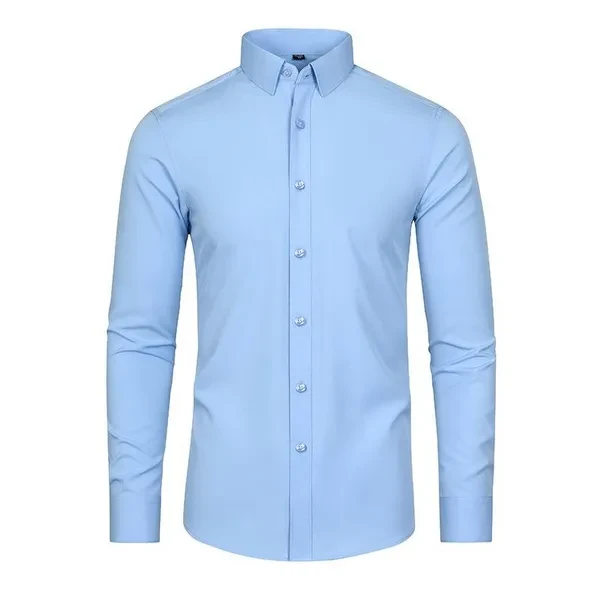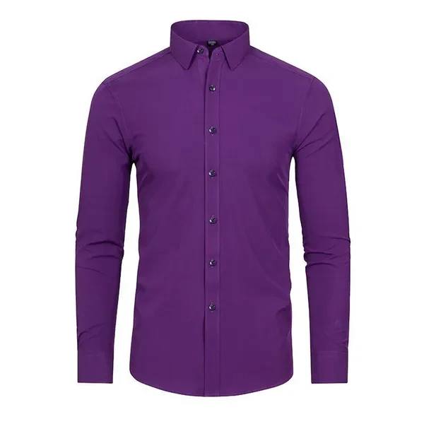 Mens Non Iron Elastic Shirts Formal Long Sleeves Button Down Casual Dress Shirts