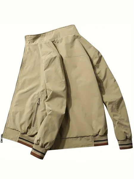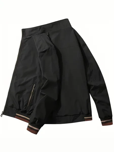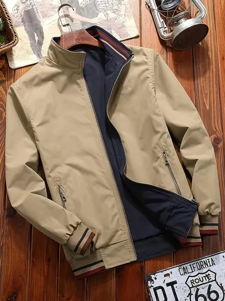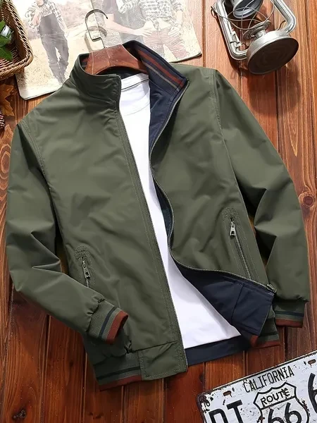 Men's Reversible Casual Stand Collar Fashion Zip Up Jacket, Spring & Autumn Comfy Jacket