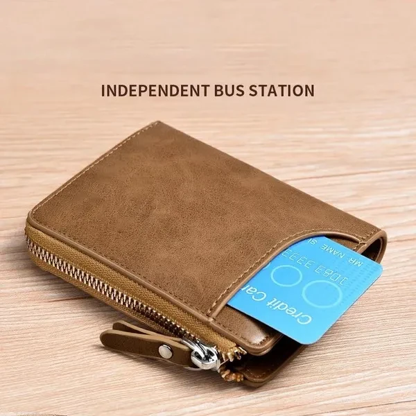 Mens Wallet Leather Business Card Holder Zipper Purse Luxury Wallets for Men RFID Protection Purses Carteira Masculina Luxury