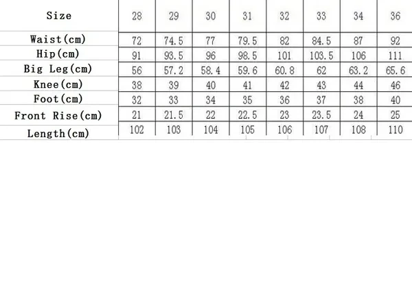 Warm Note: please refer to the size chart in the product pictures to choose the right size when you place an order, thanks! Item Type:Jeans Gender:Men Material:Denim Fit Type:Slim Length:Full Length Jeans Style:Pencil Pants Selling Point: Zipper closure Fashionable Ripped Holes Denim Jeans Pockets with zippers Hook, Button and Zipper Fastening Motocross-style ribbing and panels,Regular waist, ultra-slim legs with quilted sections at knees As different computers display colors differently, the color of the actual item may vary slightly from the above images, if you care about it .please do not order .thanks for your understanding! Package Contents: 1 x Jeans