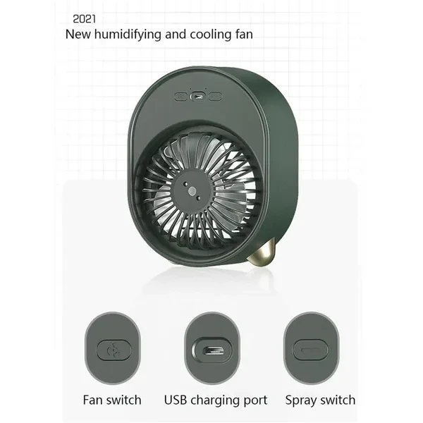 Description: Product name: USB Air Cooler Humidifying Spray Cooling Desktop Refrigeration with 6 Colors LED 3W Rated Power Micro USB Plug Interface Gadget Material: ABS+ electronic components Product color: white pink, green Input voltage: 5V Input current: 1A Rated power: 3W Plug interface: Micro USB Packing list: 1 x Cooling fan 1 x charger cable