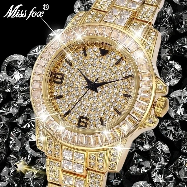 Missfox Men Watches Waterproof Wrist Watch Unisex Full Diamond Quartz Men Watch