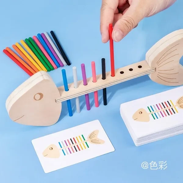 Montessori Teaching Aids Wooden Fish Bone Color Matching Games Children's Early Education Puzzle Toddler Learning Toys