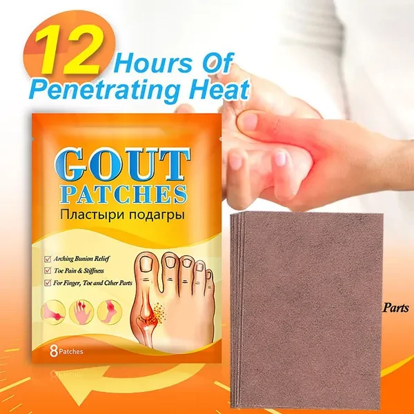 -Natural Ingredients Gout Pain Relief patches for Fingers, Toe Etc... - Chinese traditional ingredients,optimized by science - 100% natural herbal treatment - INDICATION: Naturally support you during gouty attacks. - Effective and safe - Fast acting and long lasting - Easy to use and carry