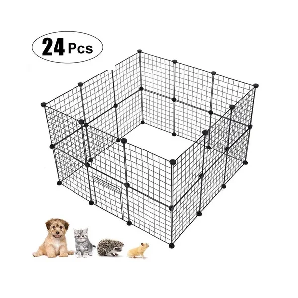 Features: 1. Easy to assemble: easy to assemble with instructions and includes mallet.Use cable connections for more functions, such as doors or ramps 2. For various animals: hedgehogs, hamsters, guinea pigs or rabbits, they can have fun in this fence.It's easy to look at them from any Angle 3. DIY expandable: make different shapes of qualified translucent white material panels to present different combinations into the actual room layout 4. Green and durable products 5. Strong, not easy to fall apart 12pcs Package Includes: 12 x Metal Panels 28 x Black ABS plastic connector, 1 x Wooden hammer 1 x Instructions 24pcs Package Includes: 24pcs metal plates 48pcs zip ties 12pcs non-slip mat 48pcs connectors 1pc mallet 1pc user manual 36pcs Package Includes: 36pcs metal plates 72pcs zip ties 12pcs non-slip mat 72pcs connectors 1pc mallet 1pc user manual Specifications: 1. Material:Metal panels 2. Color: Black 3. Product Size: (28 x 56 x 14)" / (71 x 142 x 35.5)cm (L x W x H) 4. Weight: 6lb / 2.7kg Note: 1.When receiving the goods, please confirm the product according to the listing of instructions. Once you find Less pieces, please provide relevant pictures to contact us. We will deal it in the time. 2.Please install goods with the instruction manual. 3.It is recommended that the installation should not be too tight to adjust easily. After the structure is installed, firm the interface for more stability.