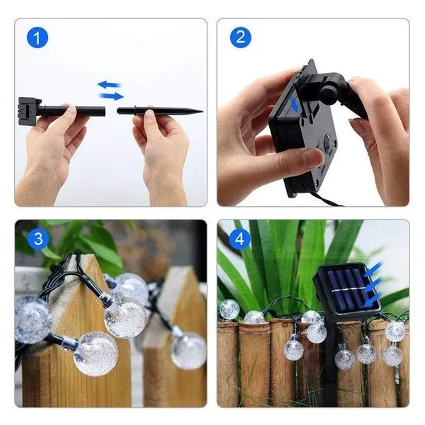 Package include: 1 PC x 20ft 30 LED Solar String Lights 1 PC x Ground Stake 1 PC x Solar Panel Product description Solar String Lights, Globe Solar Lights, Best Choice for Decorating Outdoor & Indoor Decorations. Make your environment out of ordinary. It is an Ideal for decorating your home, patio, lawn, garden, swing, tree house, pavillion, party, wedding, celebrations, bedrooms, balcony, window, restaurant, roof ceiling, bars, walkway, shops etc. Products Features: 2019 New and High Quality Solar panel : 5.5V 120 Ma Li-ion battery: 3.7V 1200MA Micro charger: 5V 500mA Solar Panel Box Size: 85*65*23mm Note: It is charging ONLY when the switch is turn ON. The solar panel MUST be installed in a well-lit location where it can receive maximum sunlight during daytime hours.Any cover that shades the panel will affect its ability to absorb sunlight and decrease the amount of brightness. The led solar string lights is designed to illuminate in dark conditions and may not operate if other source of strong lights reflects on the panel.Please avoid street lights and floodlights to impact the PIR sensor. The solar panel of the solar outdoor string lights is suggested to be fully charged for 6 hours at the first use. The globe string lights 'working time varies with the intensity of sunlight, user's geography locations, weather conditions and shift of seasons. Make sure that the solar panel is NOT sheltered from the sun, because it needs to absorb enough energy from the sun. The outdoor string lights has memory function. It will return to your previous setting when you turn it off and turn it on again. Name of responsible person:SUCCESS COURIER SL Address of the responsible person:CALLERIO TORMES NUM.1,PLANTA1,DERECHA,OFICINA3, Fuenlabrada, Madrid,28947 Responsible Person Email:Spainsuccessservice2@hotmail.com
